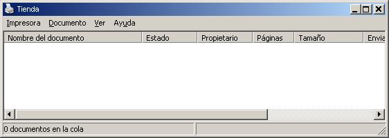Primero comprobaremos que la cola de impresión no esté atascada por un trabajo anterior, para esto iremos a Inicio –> Configuración –> Impresoras y faxes. En la ventana que aparece haremos doble click sobre la impresora que se llama «Tienda» y comprobaremos que no hay ningún trabajo pendiente de ser impreso, de ser así eliminaremos todos los trabajos y volveremos a lanzar el nuestro.